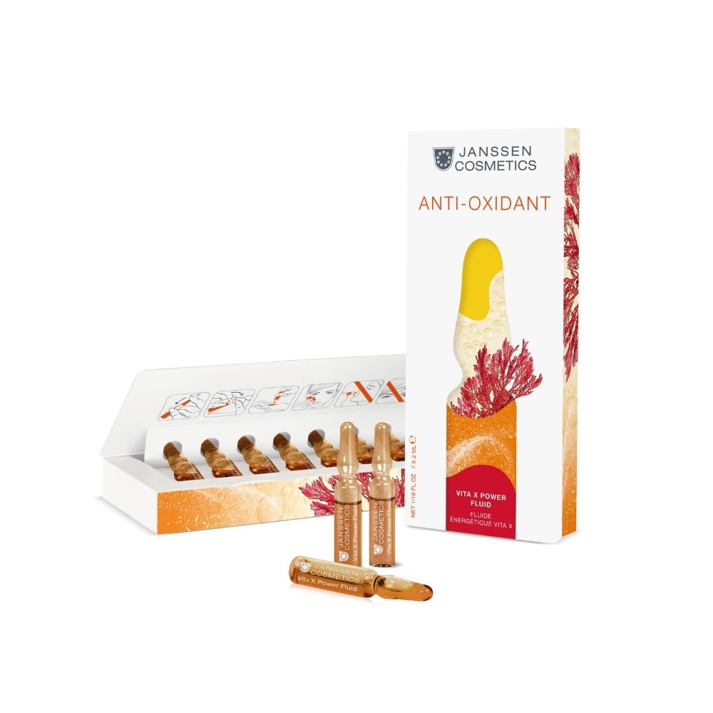 A Vita X Power Fluid egy nagy hatékonyságú antioxidáns ampulla, amely célzott védelmet nyújt a szabad gyökök okozta sejtkárosodással és a korai bőröregedéssel szemben. Az astaxanthin és a stabil C-vitamin-foszfát kettős antioxidáns rendszere semlegesíti az UV-sugárzás, a környezeti ártalmak és a stressz hatására keletkező szabad gyököket.